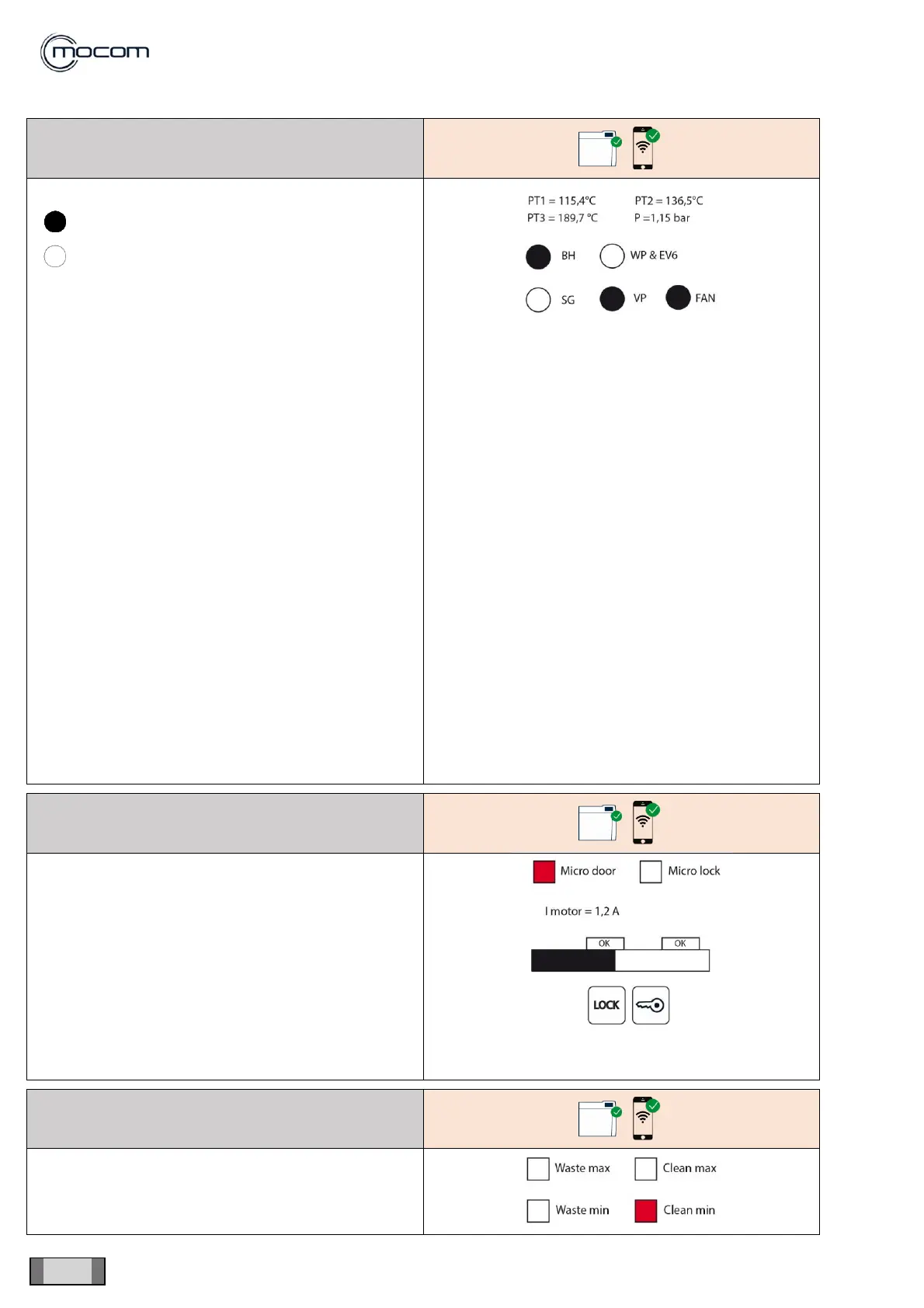 - the status of the closing system microswitches