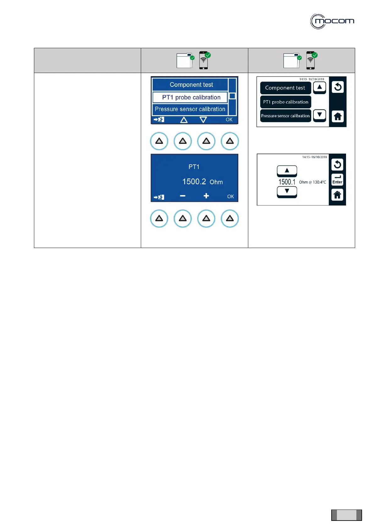 Selecting PT1 CALIBRATION