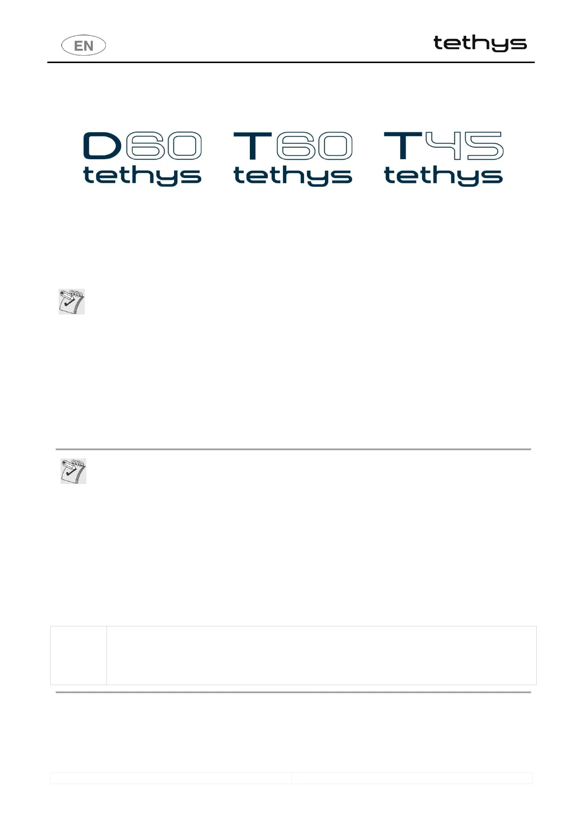 Tethys D60 - Tethys T60 - Tethys T45 SHORT-FORM MANUAL