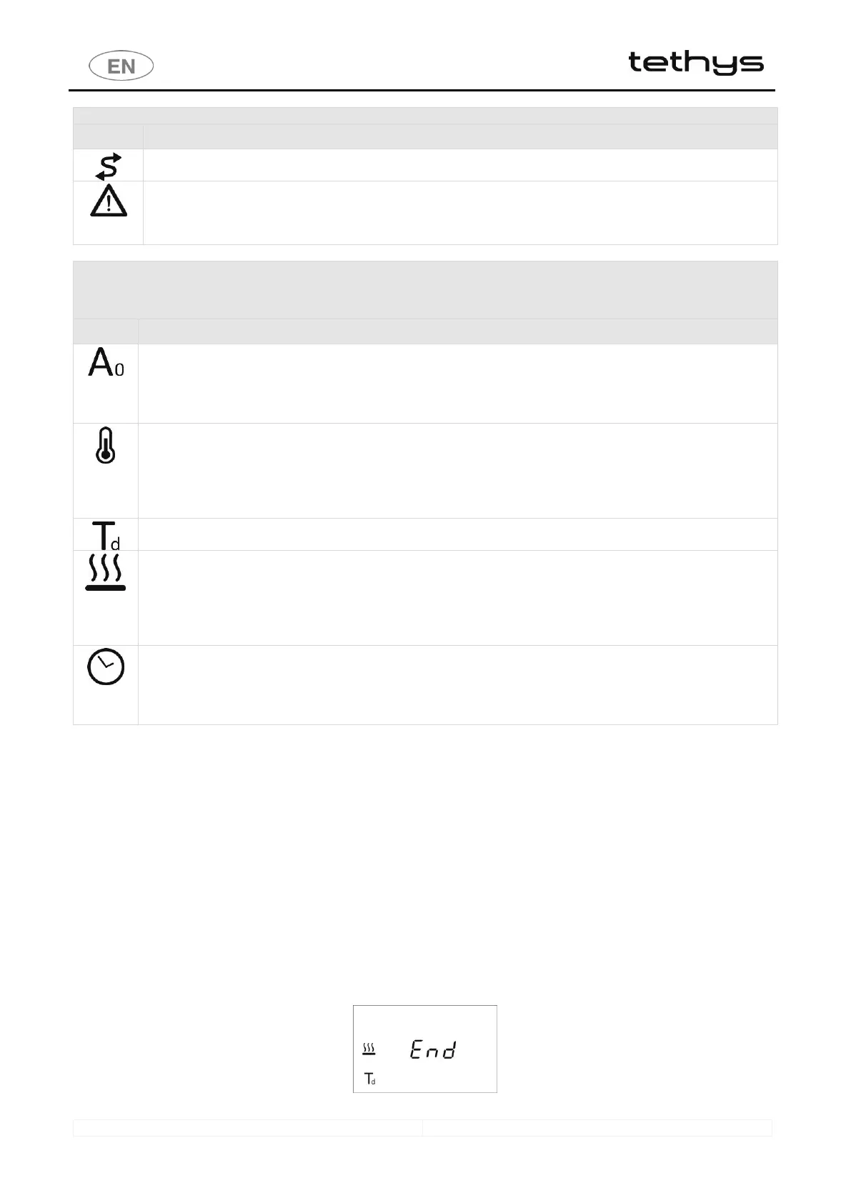 correctly; “ End” does not appear if the program has been interrupted or if an error which may affect the cycle’s effectiveness has
