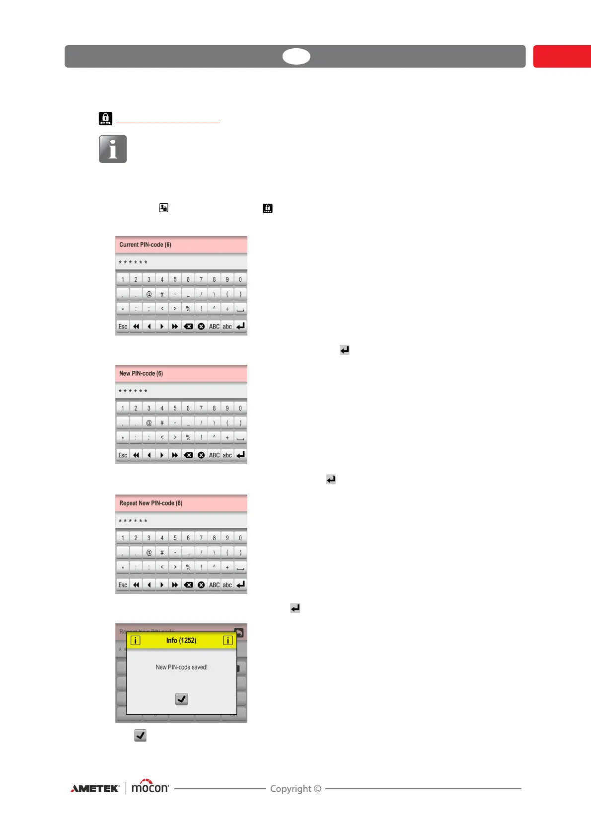 3. Enter new PIN-code (6 characters) and tap the key.
