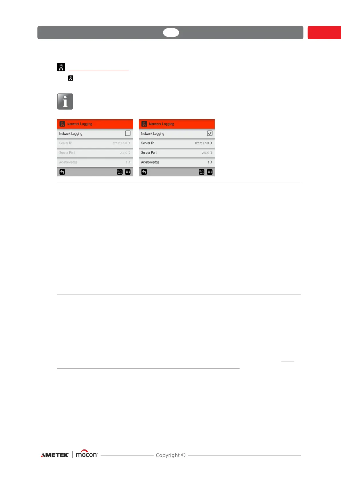 The Network Logging screen holds the parameters for the network logging function.