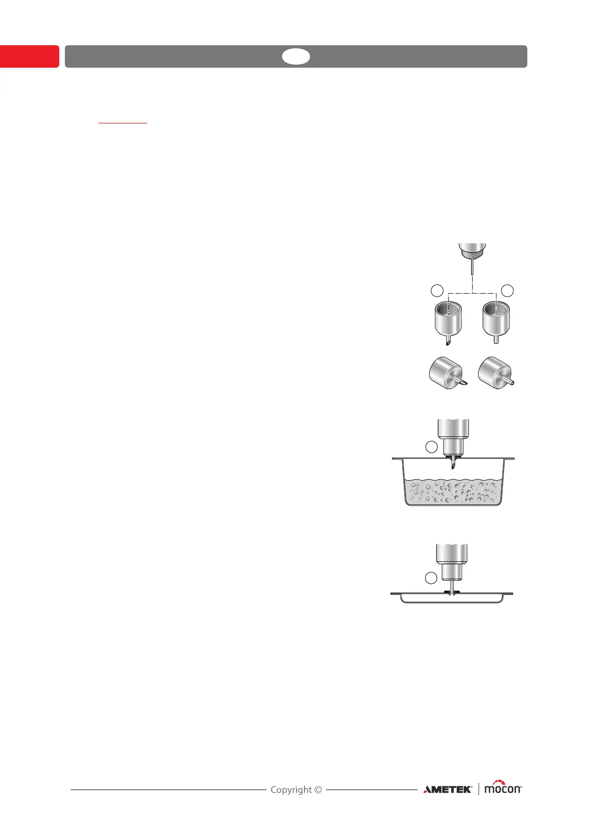 Needles are used to penetrate and inflate a package with compressed air to perform a test.