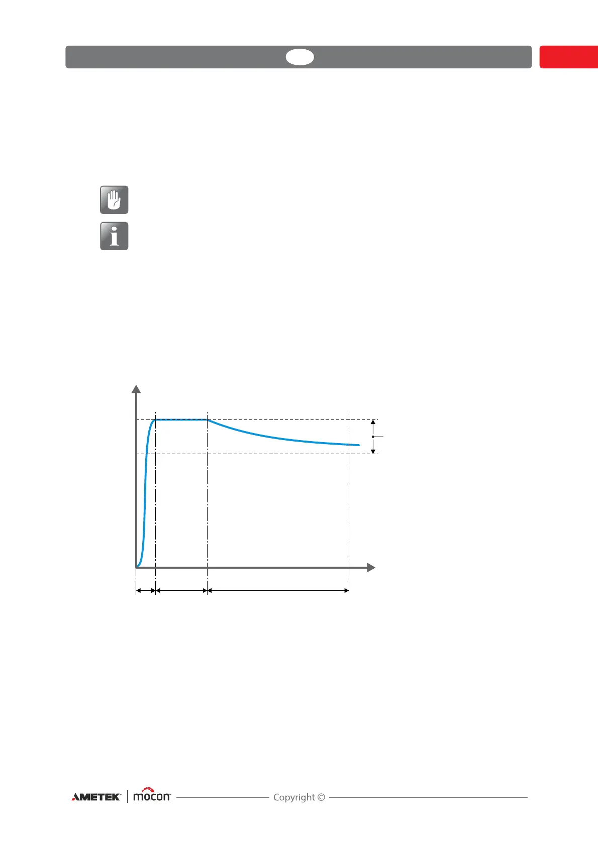 Pressure regulation stops and valves are closed. The pressure drop is measured during