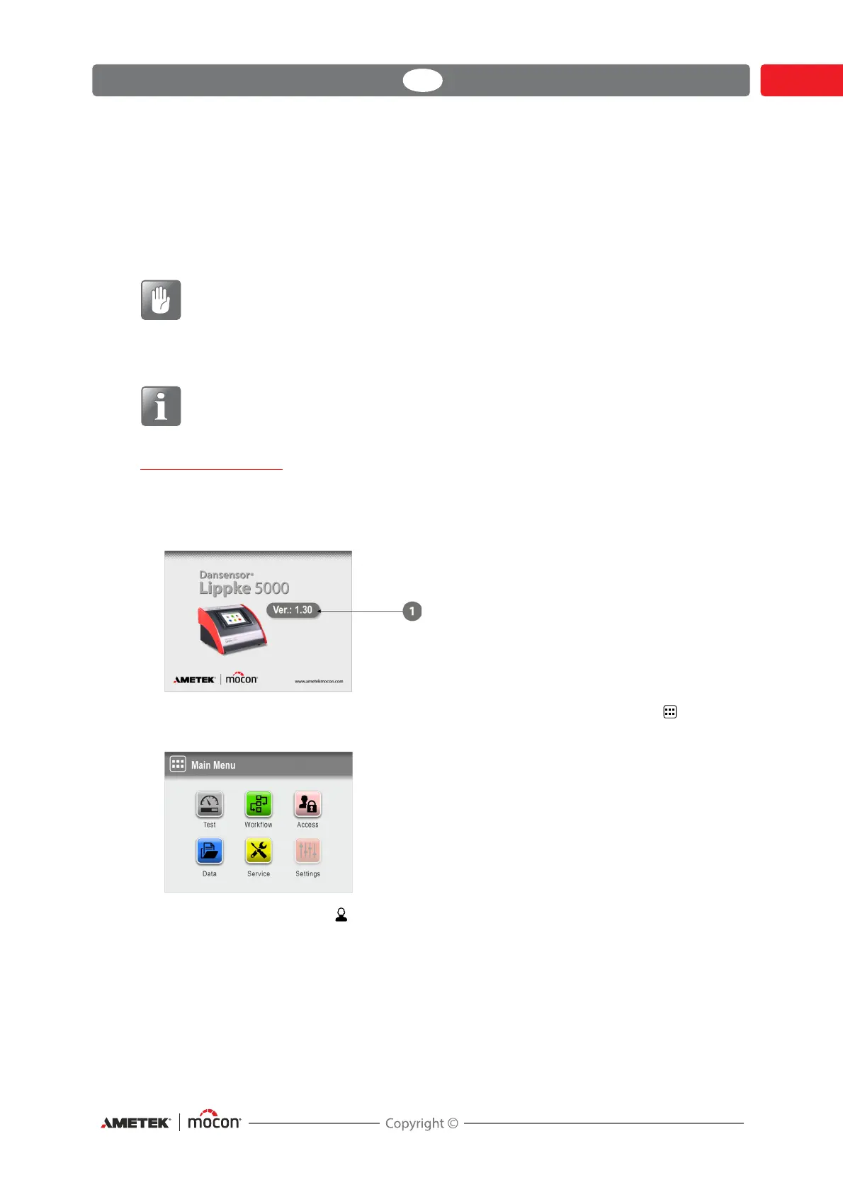 3. When the device is ready and if no login is required, the display will show the Main