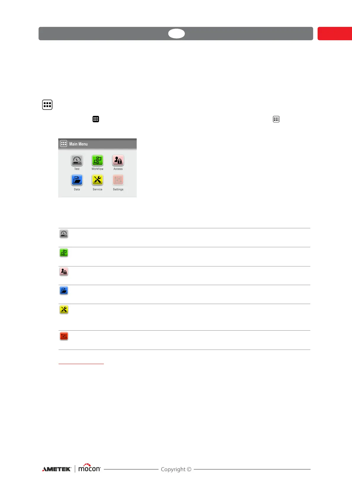 Tapping the icon in the lower right corner of the test screen takes you to the Main
