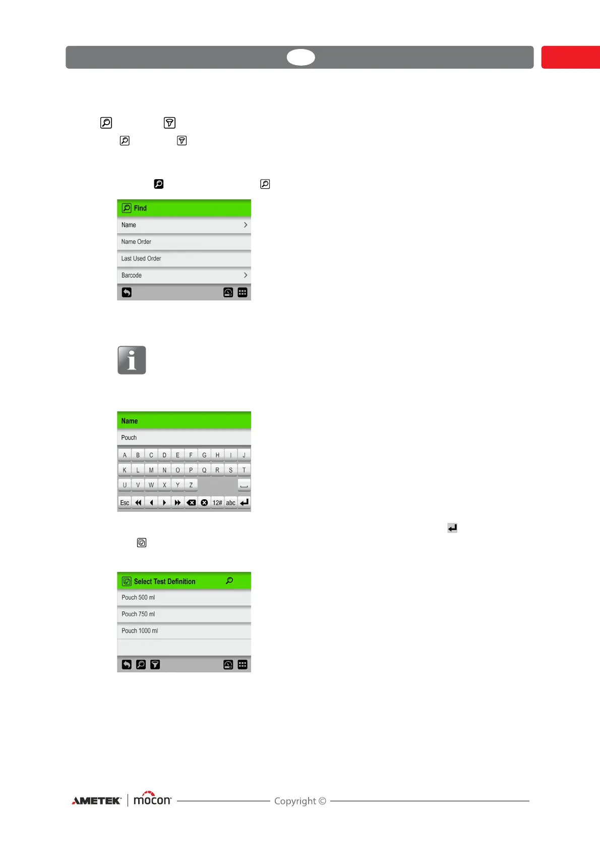 3. Key in the test definition name (e.g. Pouch) and confirm by tapping the key.