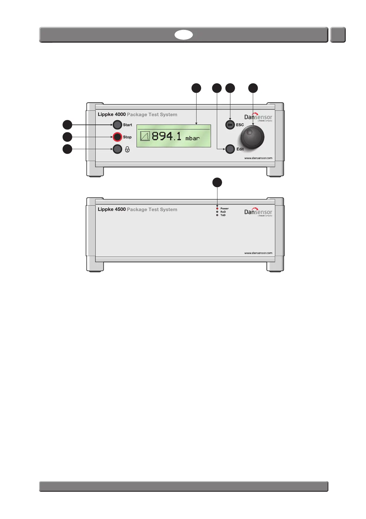 • RxD (Green) Lit when the instrument is receiving data from the computer.
