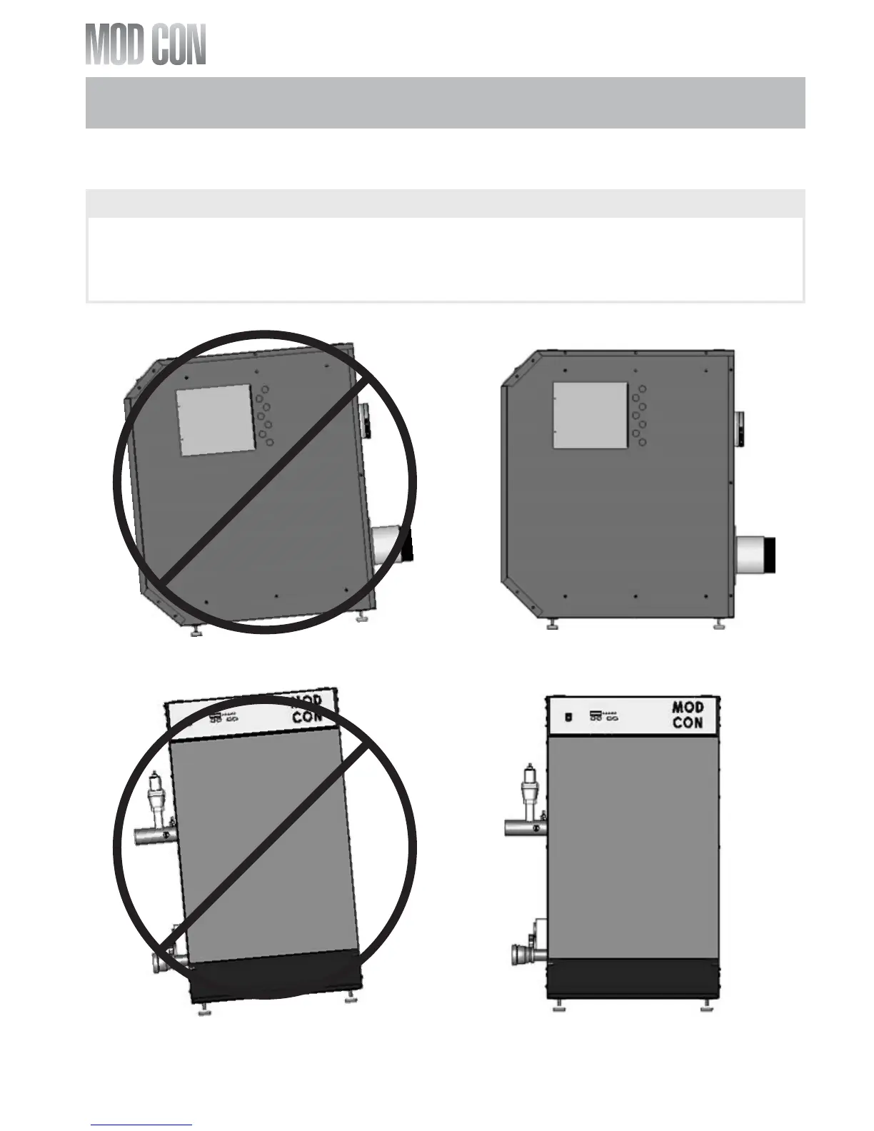 When preparing the boiler location, make sure the area where you are placing the boiler is level. In order