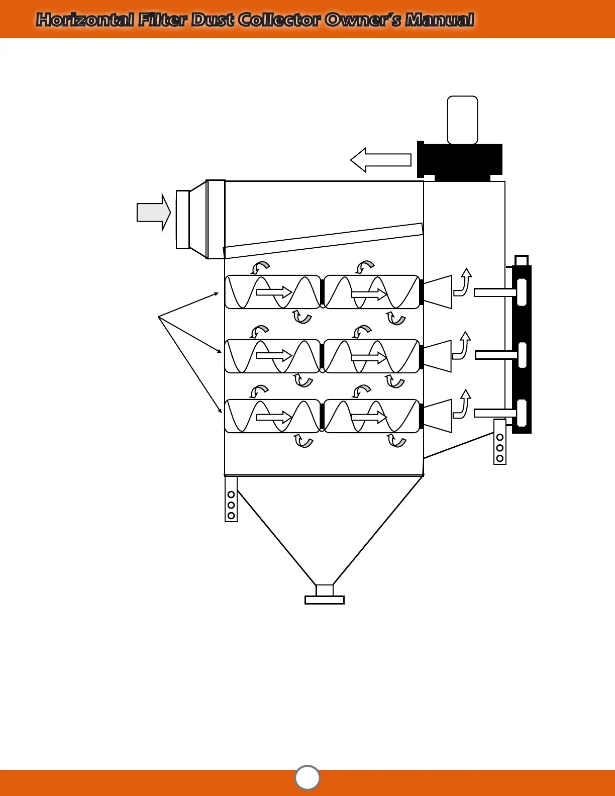 Throughout normal operation, the dust laden air enters the dust collector through the dirty a ir inlet ple num. The dirty air f lows