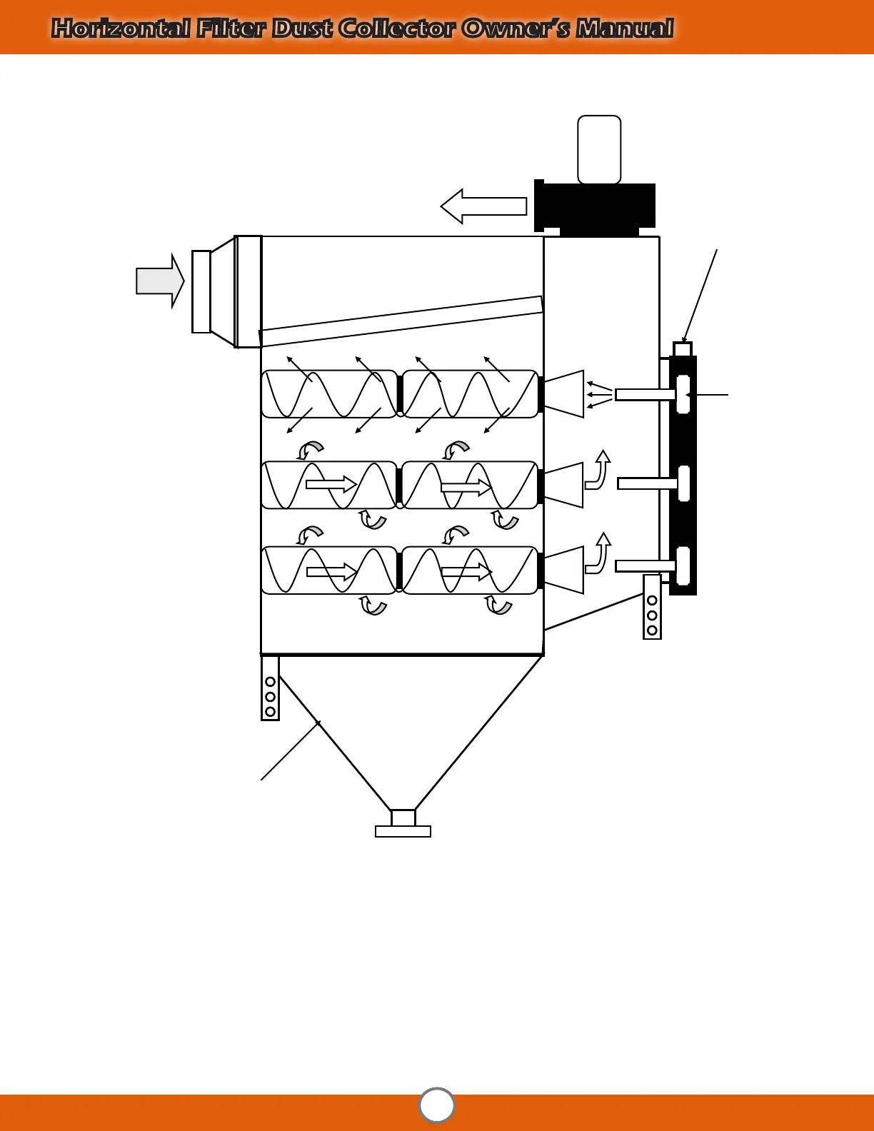 Throughout normal operation, the dust laden air enters the dust collector through the dirty a ir inlet ple num. The dirty air f lows