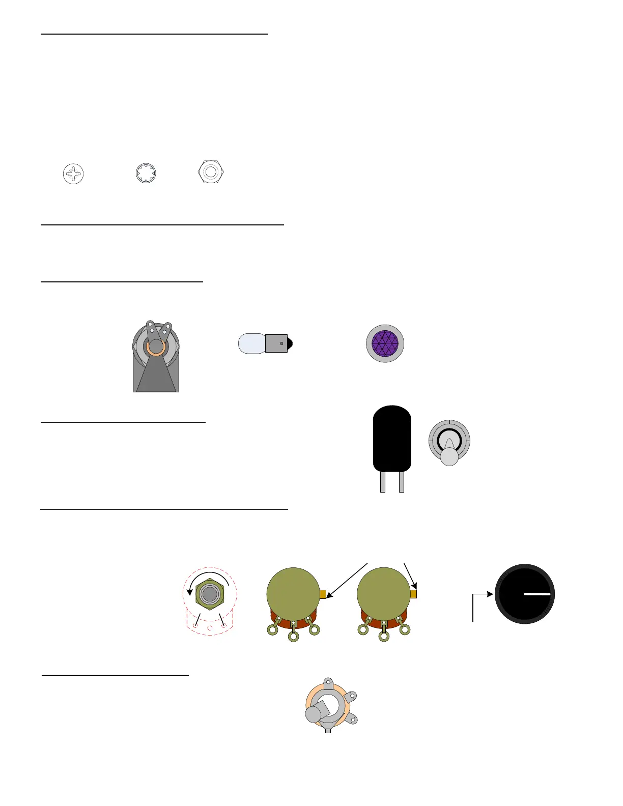 Drawing 4 shows where to mount the bass, treble, and volume pots. When they are mounted, turn their shafts all
