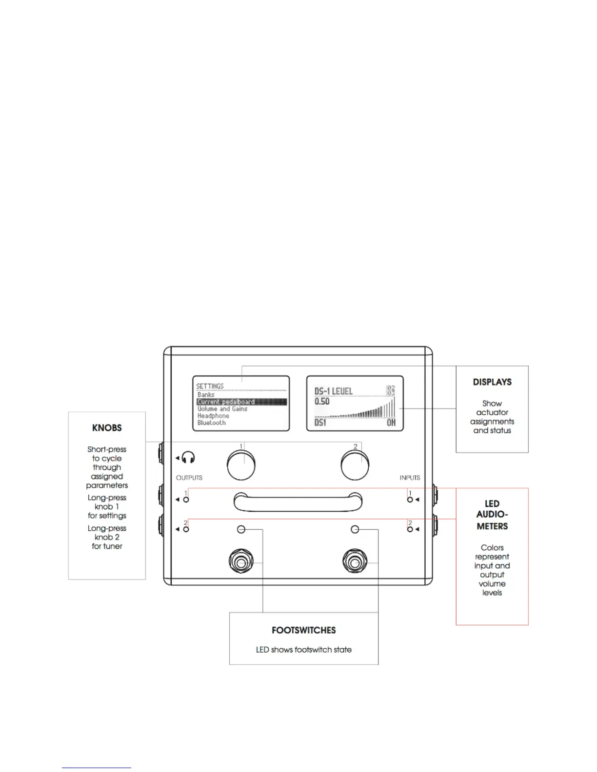 The wireframe images below expose the controls and inputs/outputs that the MOD Duo has.
