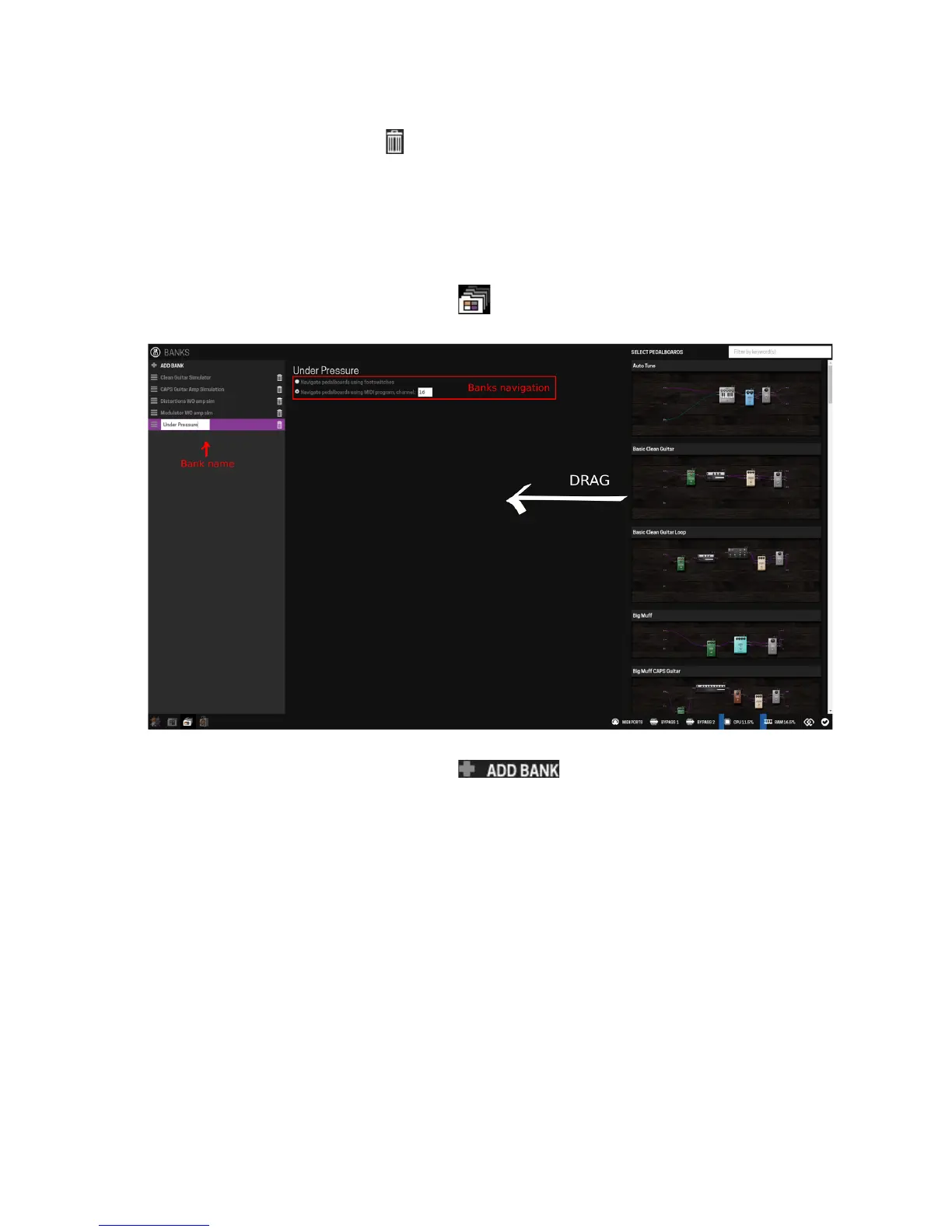 from your PC, Mac or tablet, you can organize your pedalboards in banks. To access the