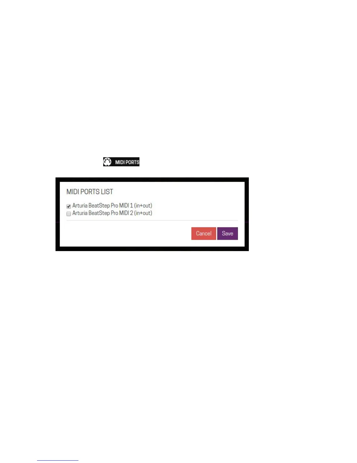 MIDI ports list. Because a single MIDI device can have multiple ports, they are not visible in