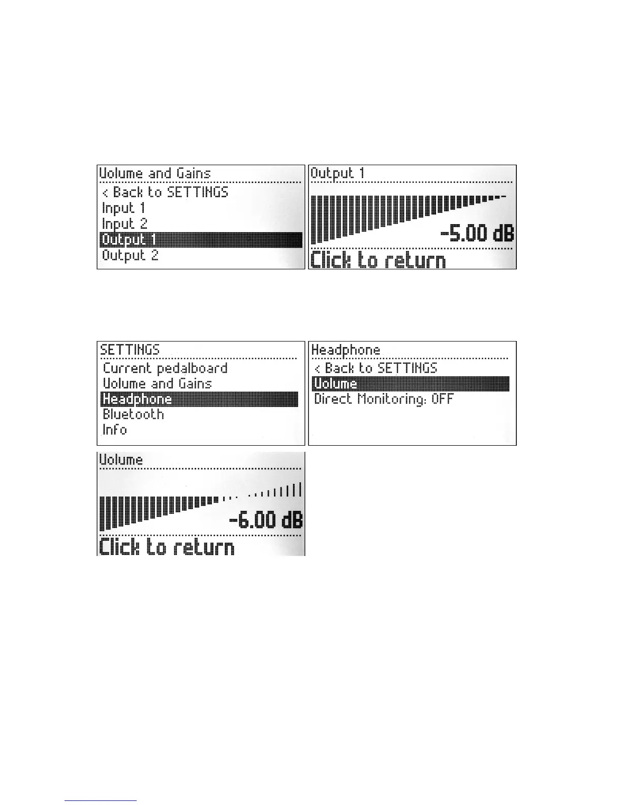 respective output. Turn the knob to adjust the value. To return to the previous menu simply