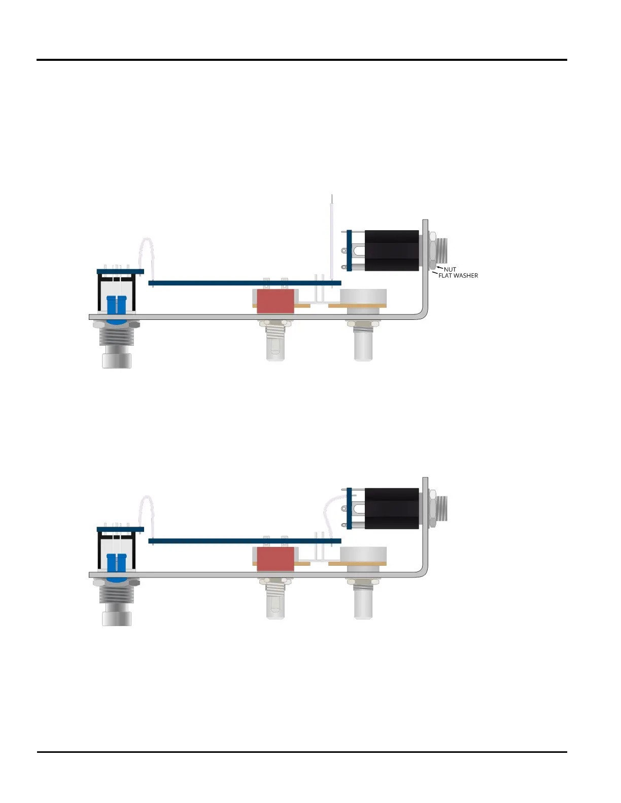jacks were soldered. Use the at washer rst and then secure the nut to each 1/4" jack. Make sure