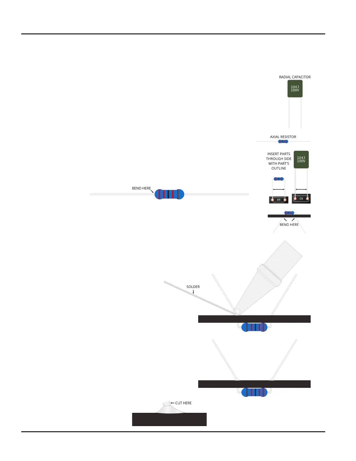 to t. For the resistors in this kit you can simply use your nger to push the lead