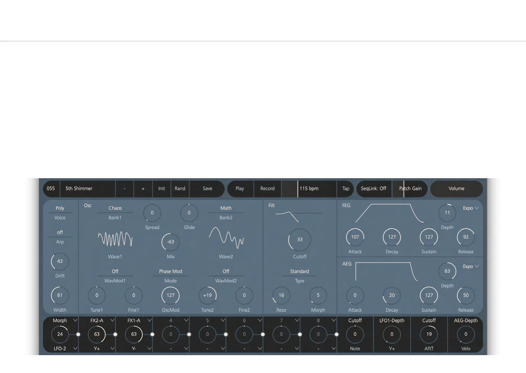 Across the middle there are the 12 modulation slots with 8 user configurable and 4 pre