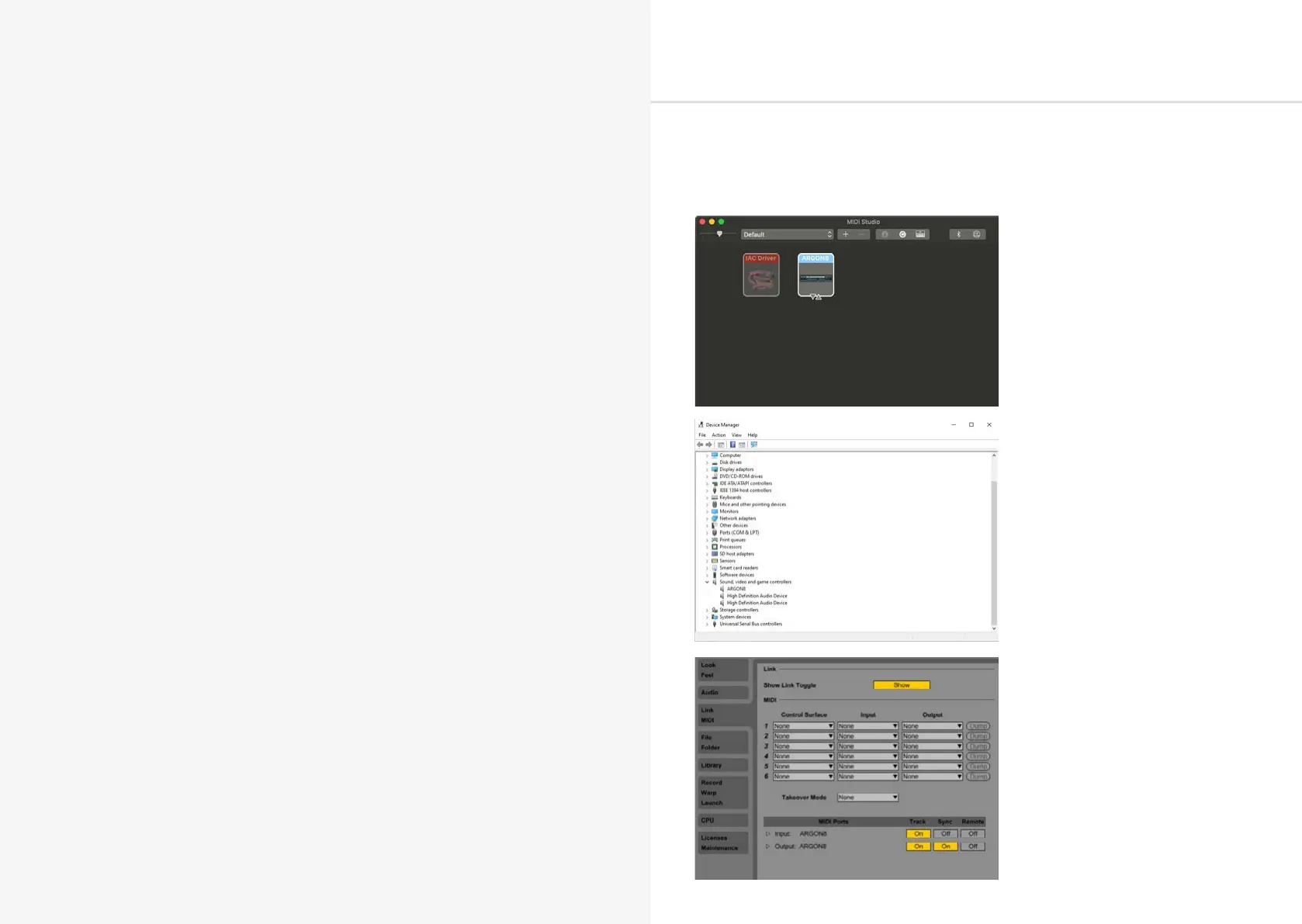 in Argon8 synthesiser to a USB port and it will show up as a MIDI input and output device in