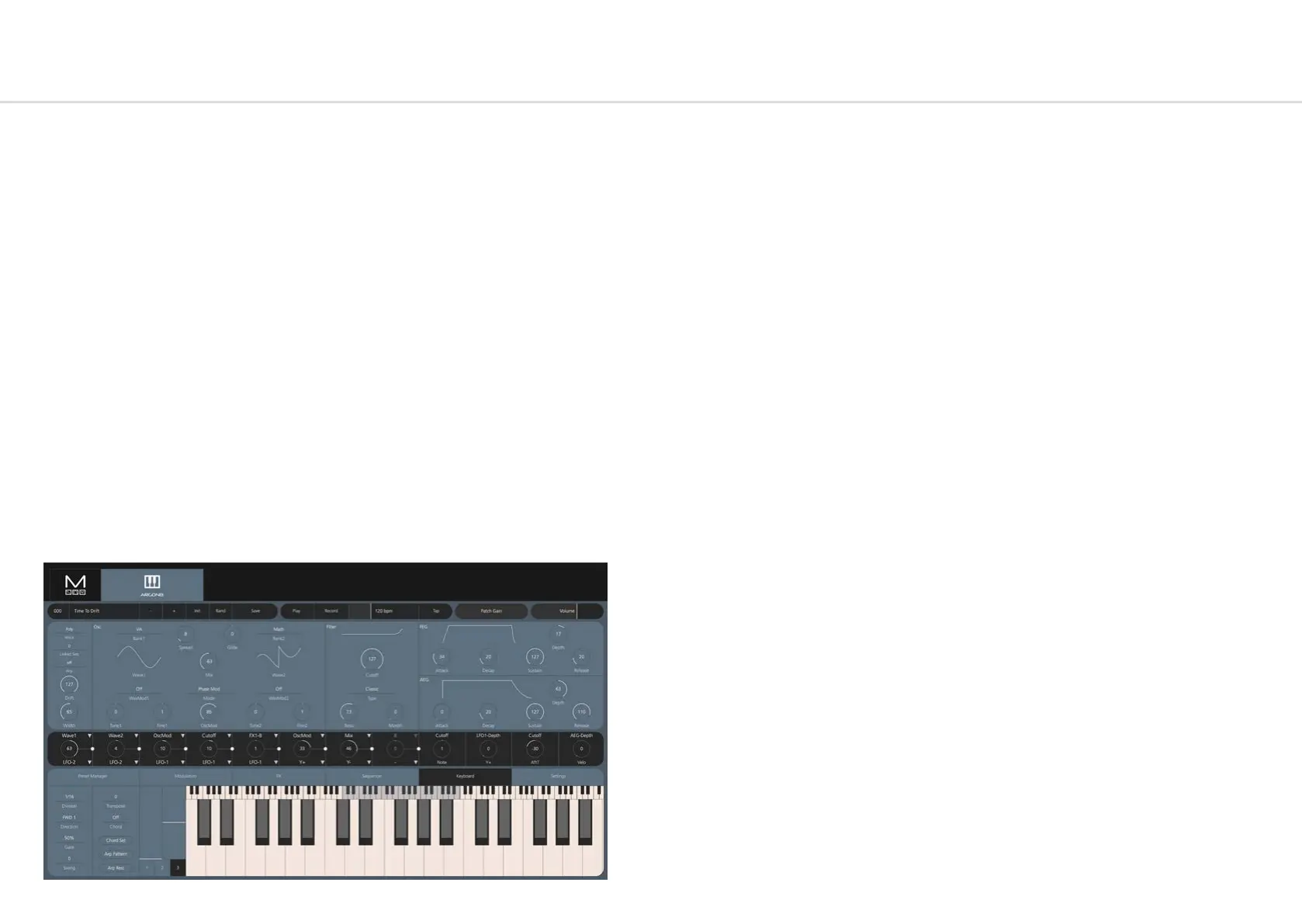 In the Keyboard Tab there is a MIDI controller that can be used to play notes on Argon8 from