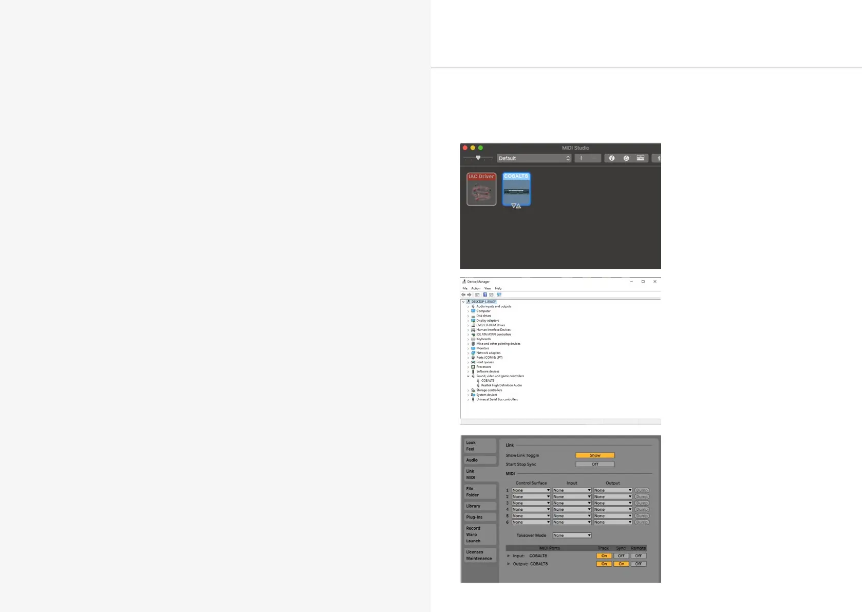 in COBALT8M synthesiser to a USB port and it will show up as a MIDI input and output device