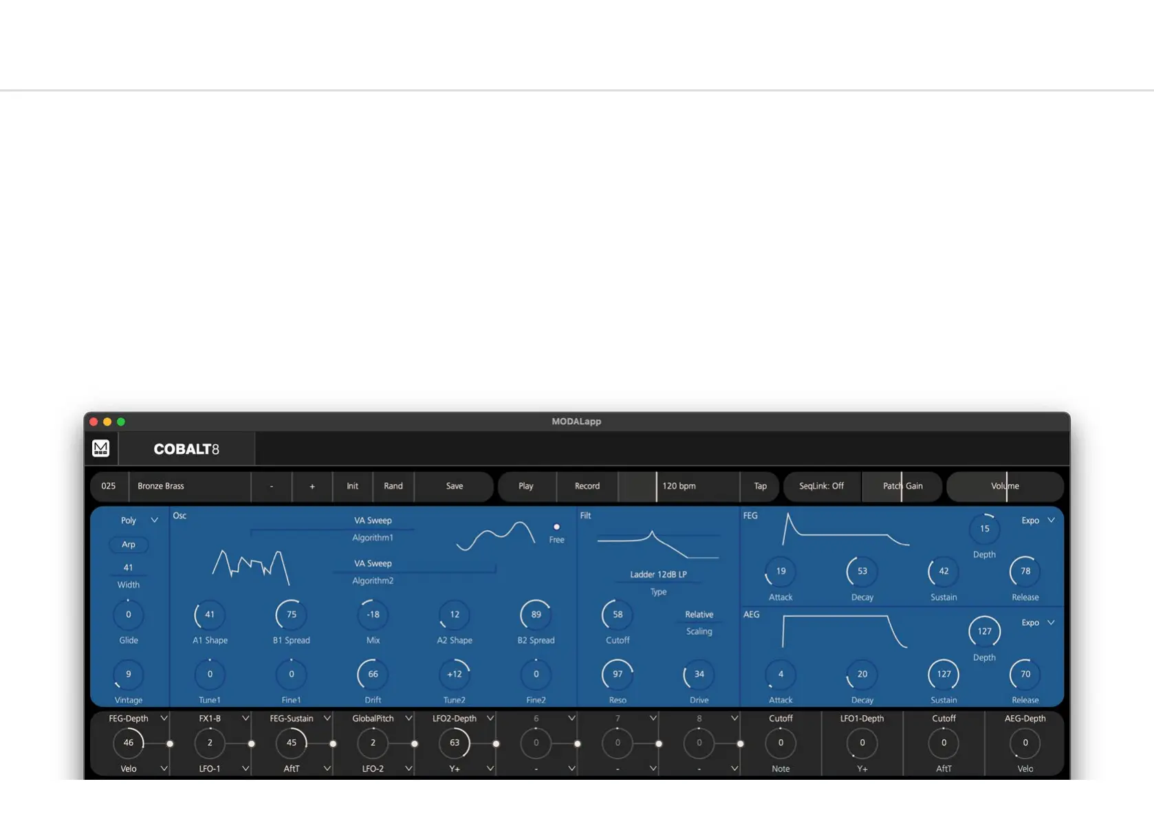 At this point you can play your COBALT8M with any MIDI controller! MODALapp forwards