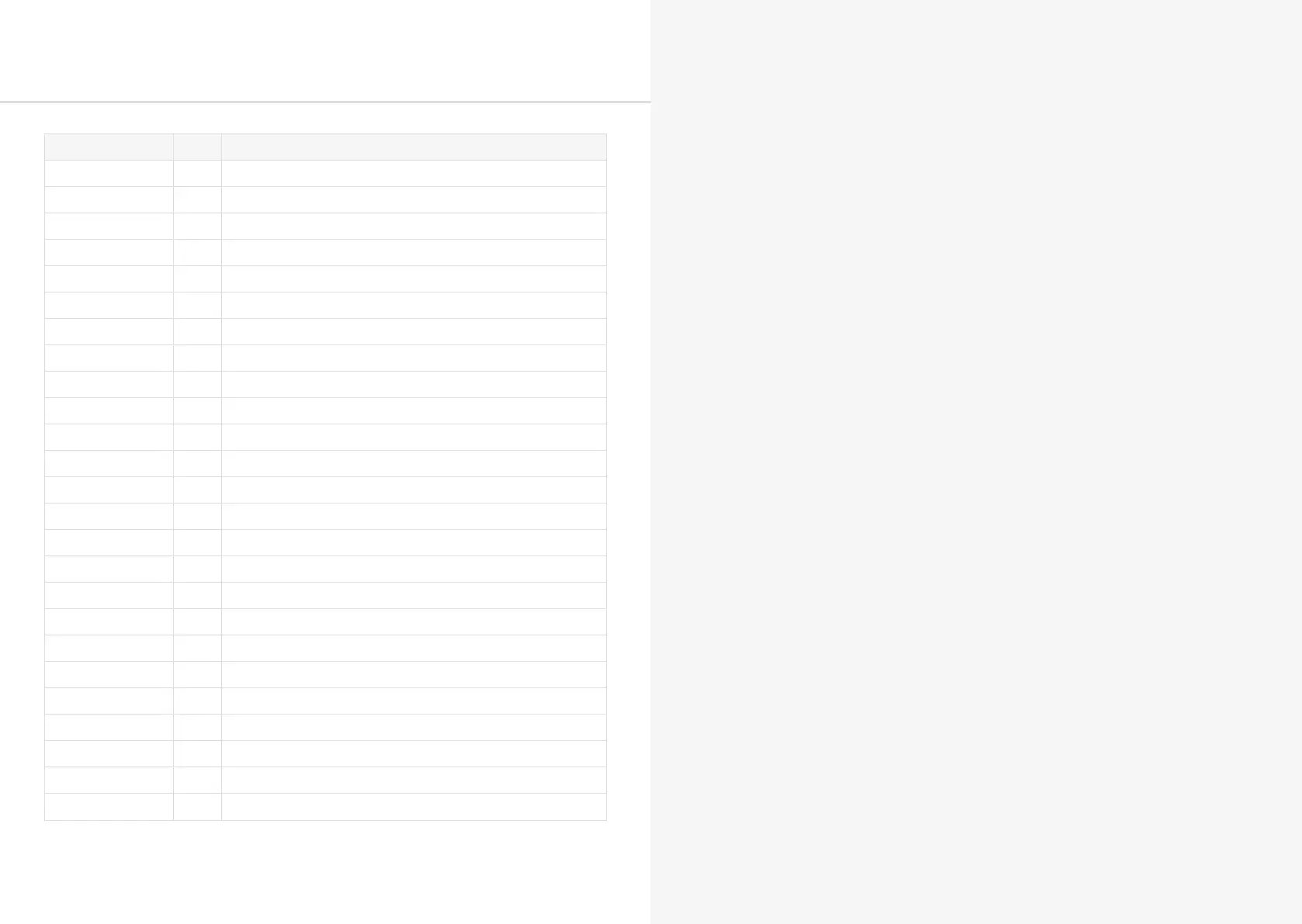 MIDI CC Implemention Chart