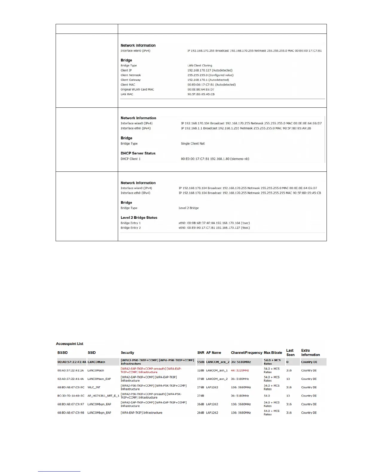 followed by AP's with other or hidden SSID's. The information at „Security“ shows us what authentication