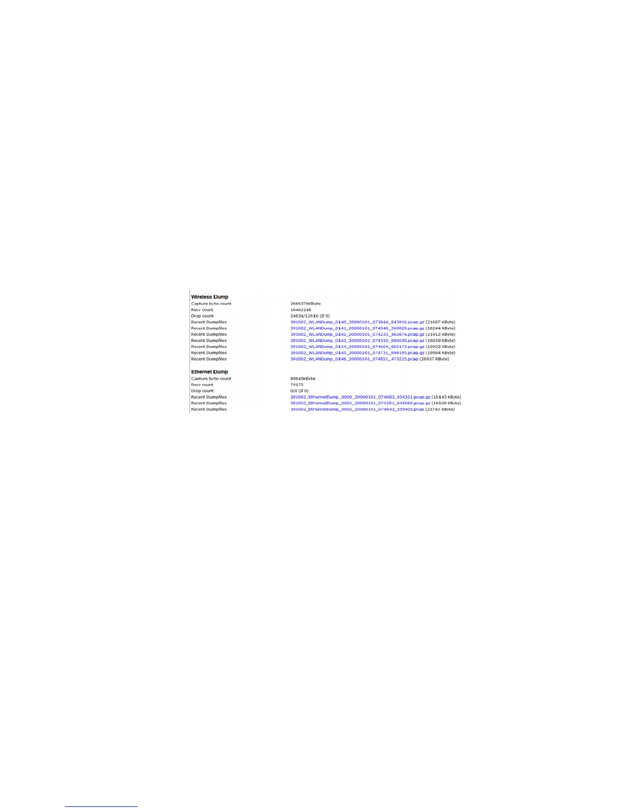 Additional information is given as to how many bytes and data packets are stored in the current dump. For