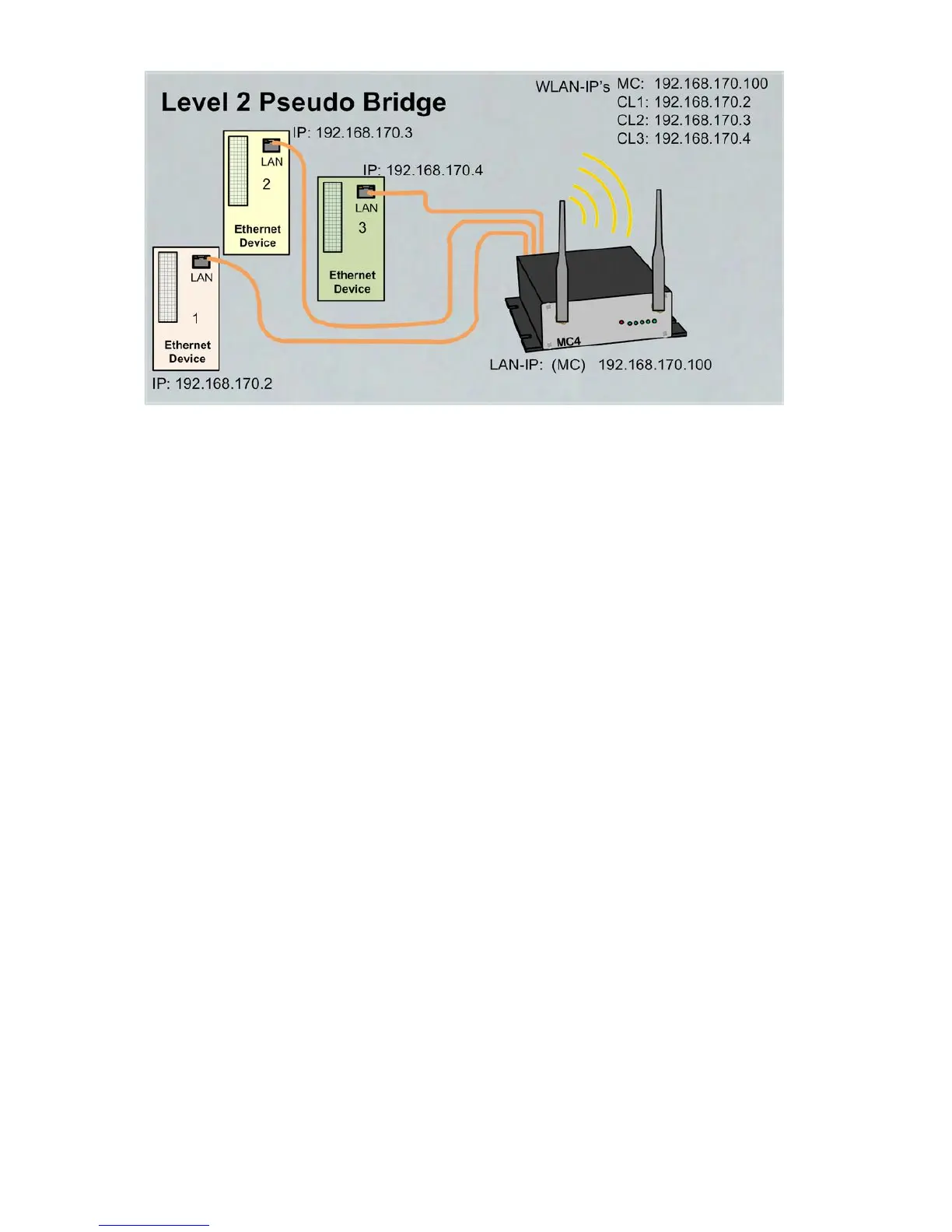 1. The MC and all wireless clients work with their own IP addresses. These IP addresses must be in