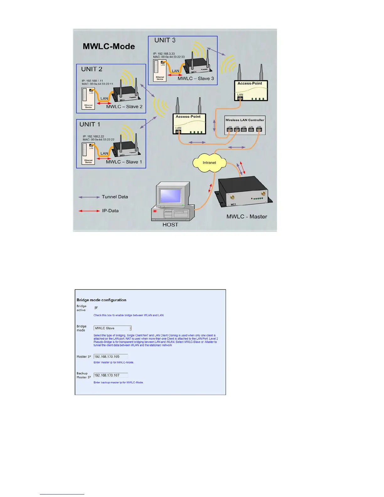 to the stationary network with there own IP- and MAC addresses. Because the MWLC master in this