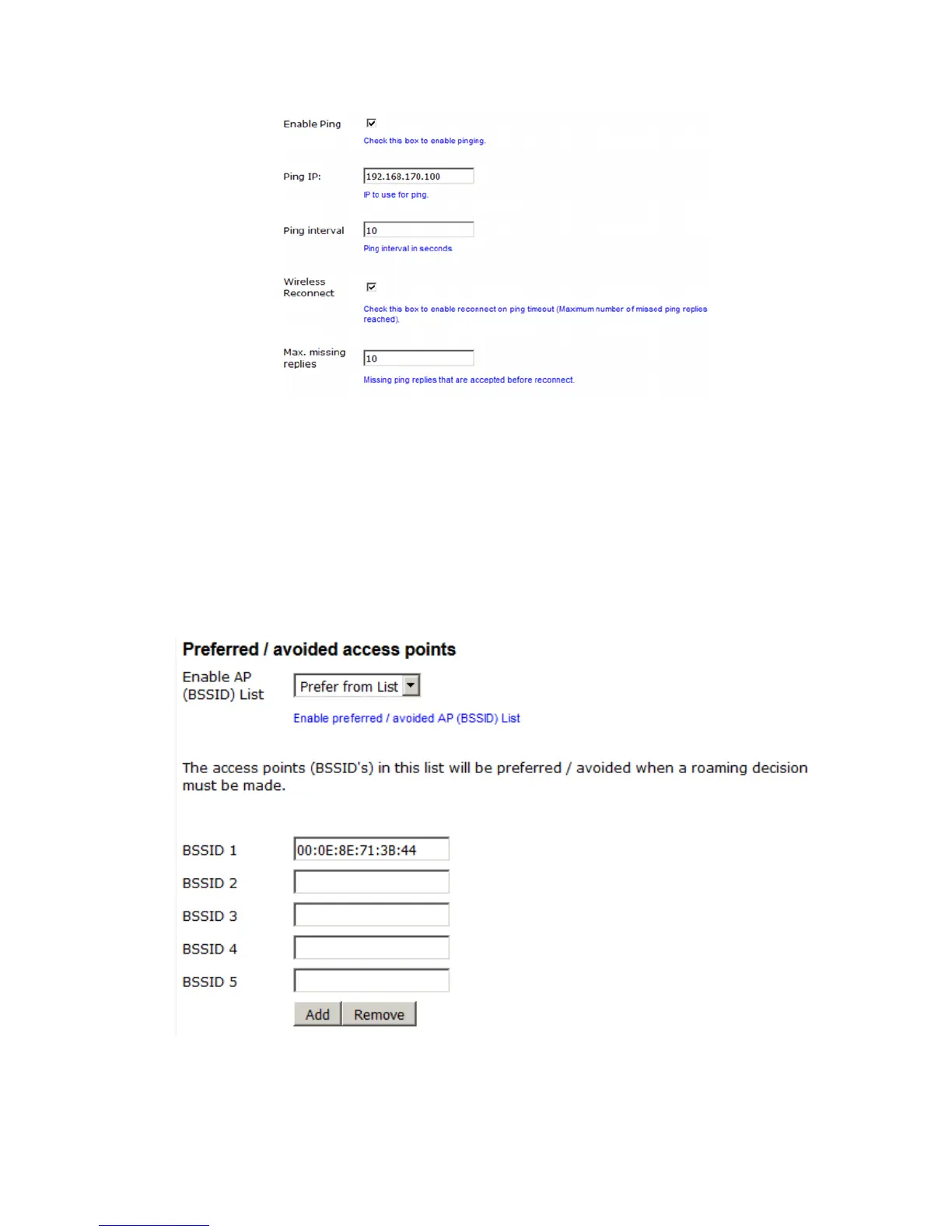 Here you can define access points that should either preferred or avoided by the MC device when a roaming