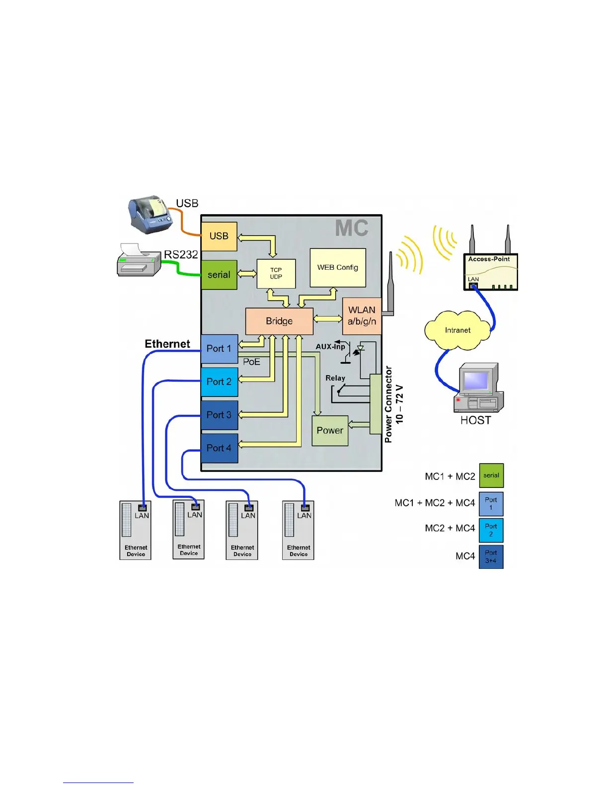 The MC is a Wireless LAN-Adapter that connects devices via Ethernet, USB or serial Port to wireless
