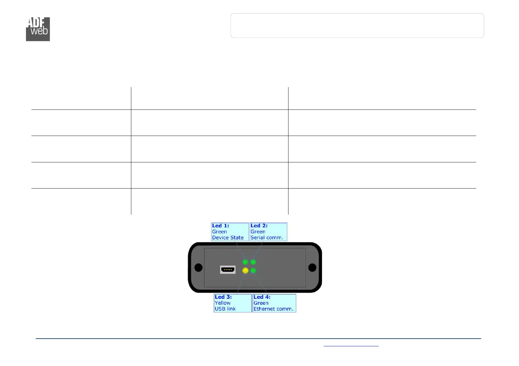 The device has got four LEDs that are used to give information of the functioning status.
