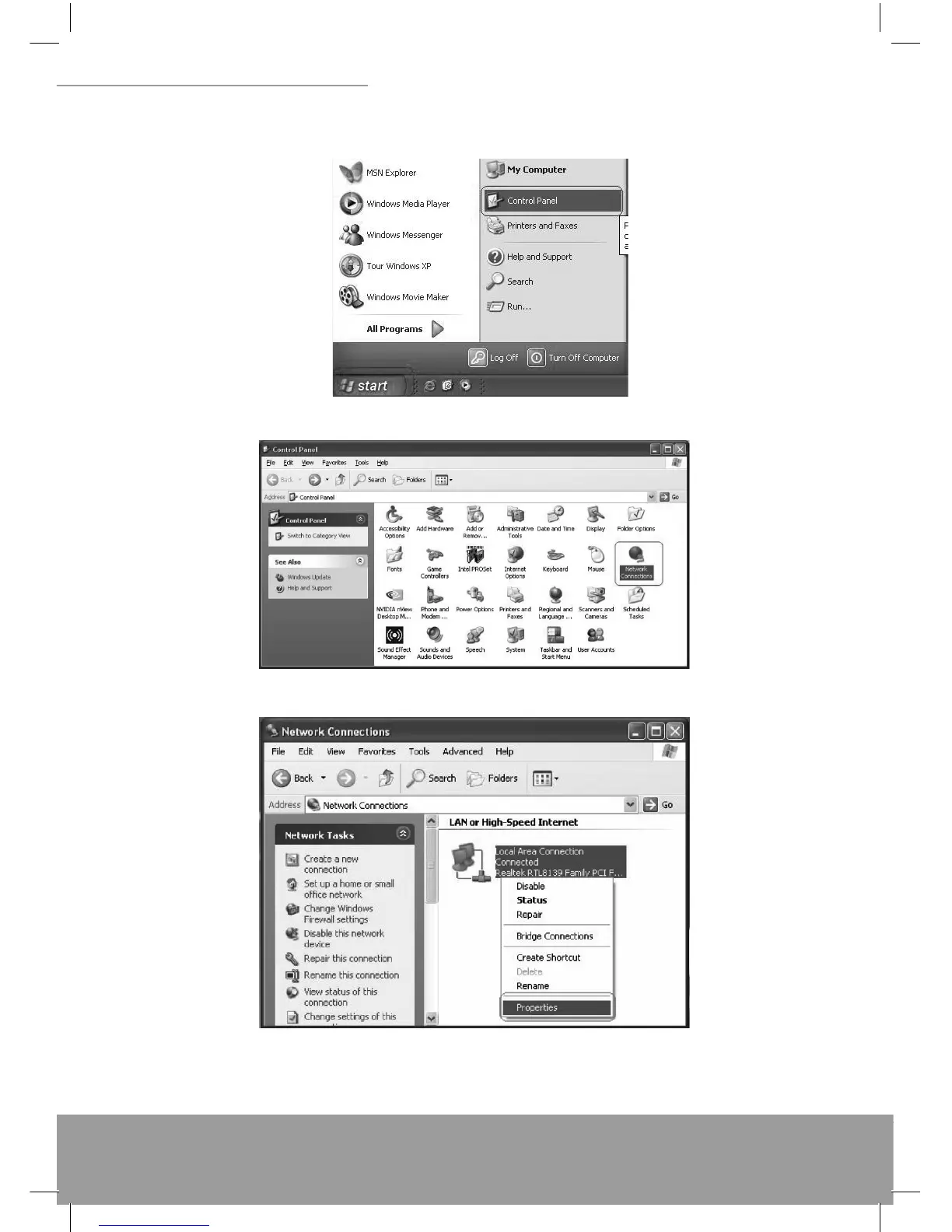 Step 3: Right-click Local Area Connection (local network your ADSL hooked up with) and select Properties: