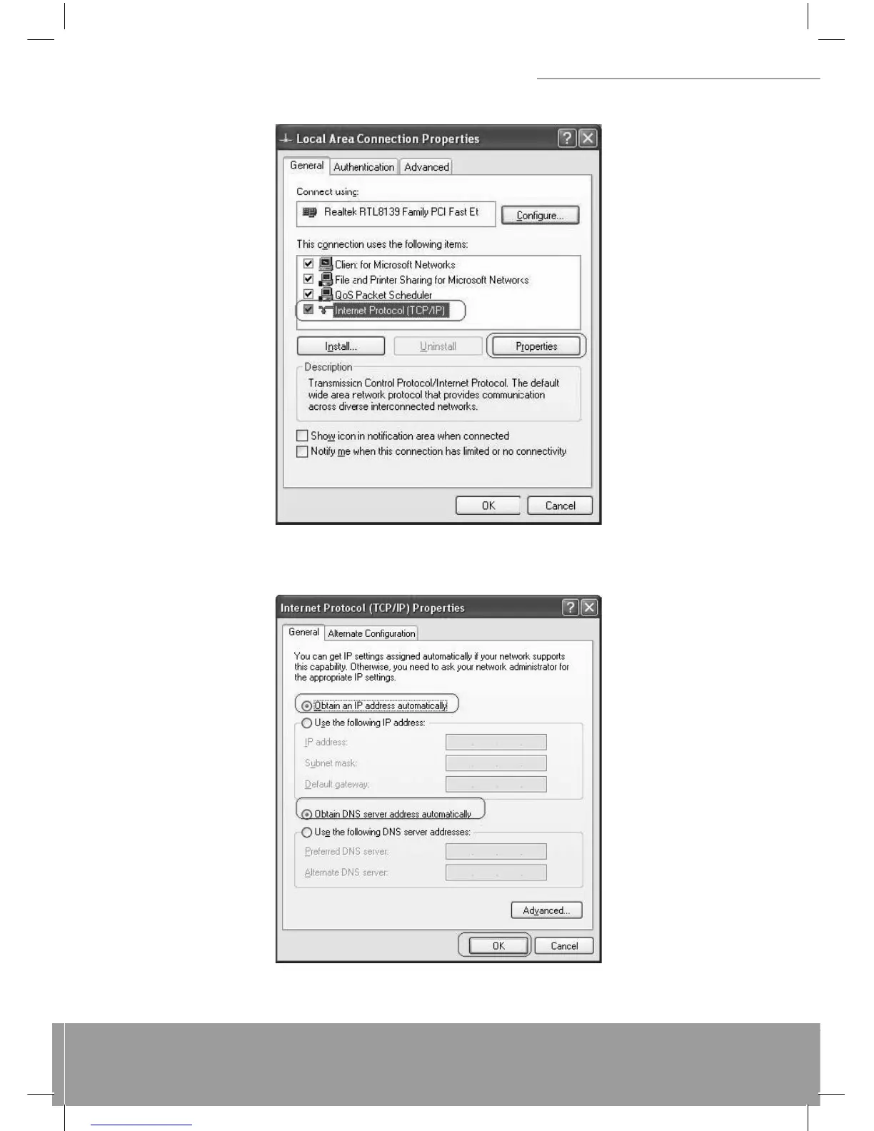Step 5: Select Obtain an IP address automatically and Obtain DNS server address automatically. Click OK to fi nish