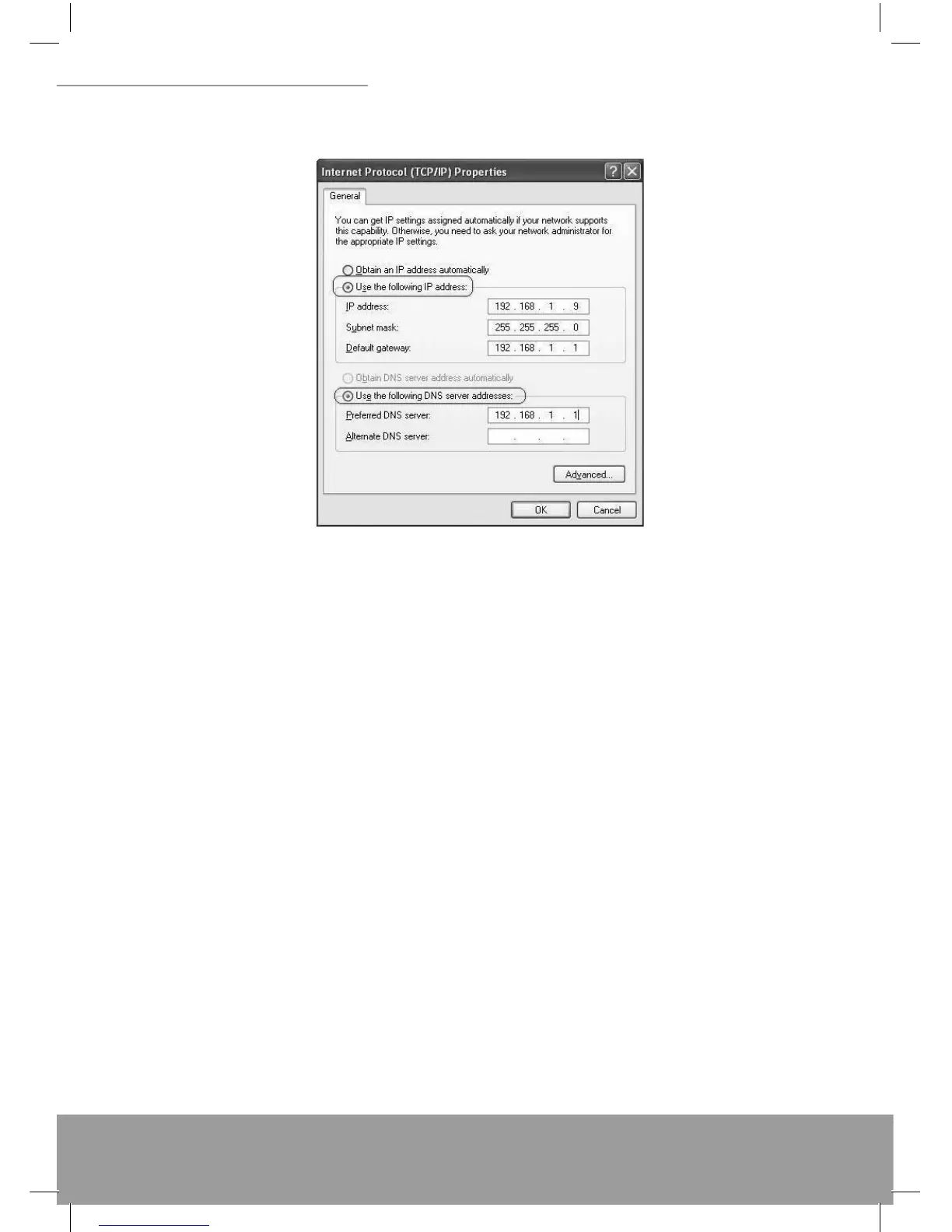 IP address: Fill in IP address 192.168.1.x (x is a number between 2 to 254).