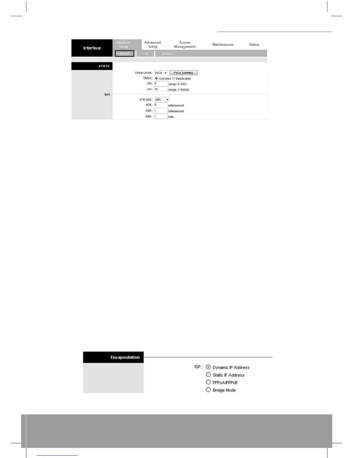 Select the encapsulation protocol your ISP uses. The following section will vary depending on which encapsulation