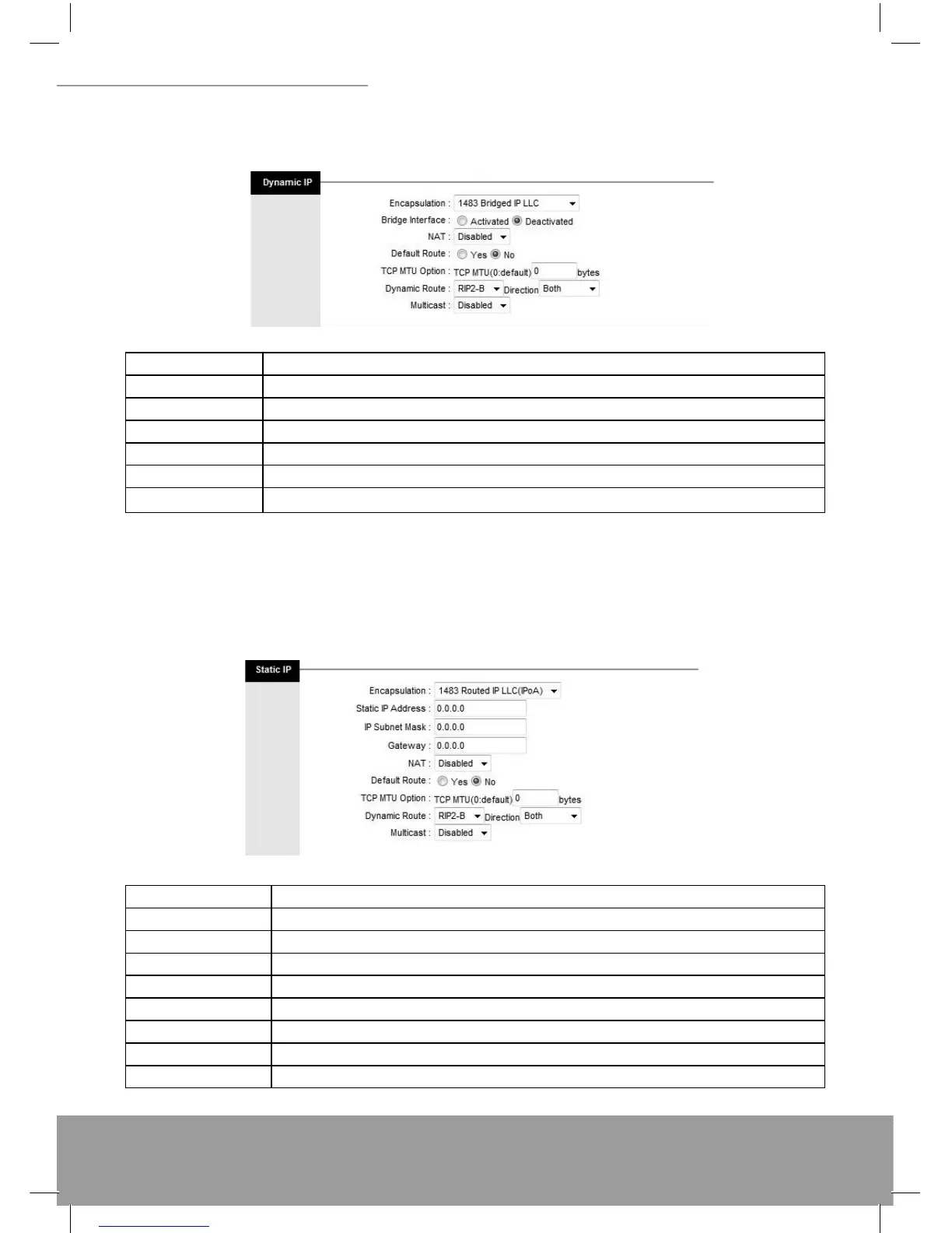 Select this option to set static IP information. You will need to enter in the encapsulation type (1483 Bridged IP LLC,