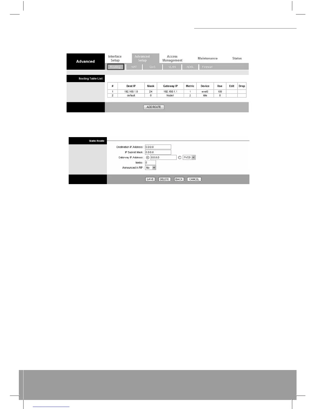 route the data most effi ciently. Select this option will list the routing table information. You can press ADD ROUTE to