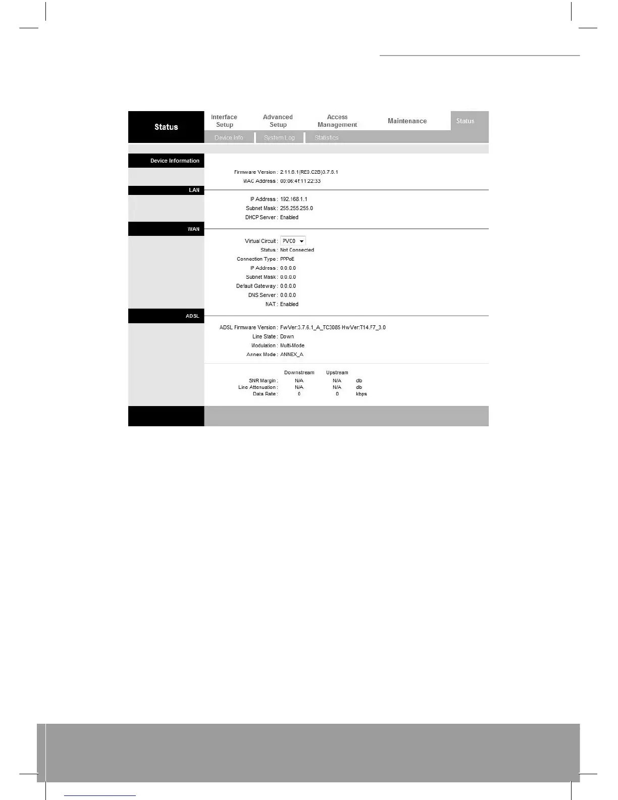 • Kliknij Interface Setup, aby skonfi gurować funkcje LAN i funkcje internetowe.