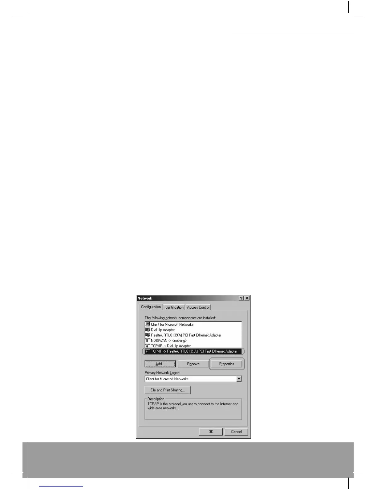 Step 3: Select Confi guration tab, then choose TCP/IP from the list of installed network Components and click Properties