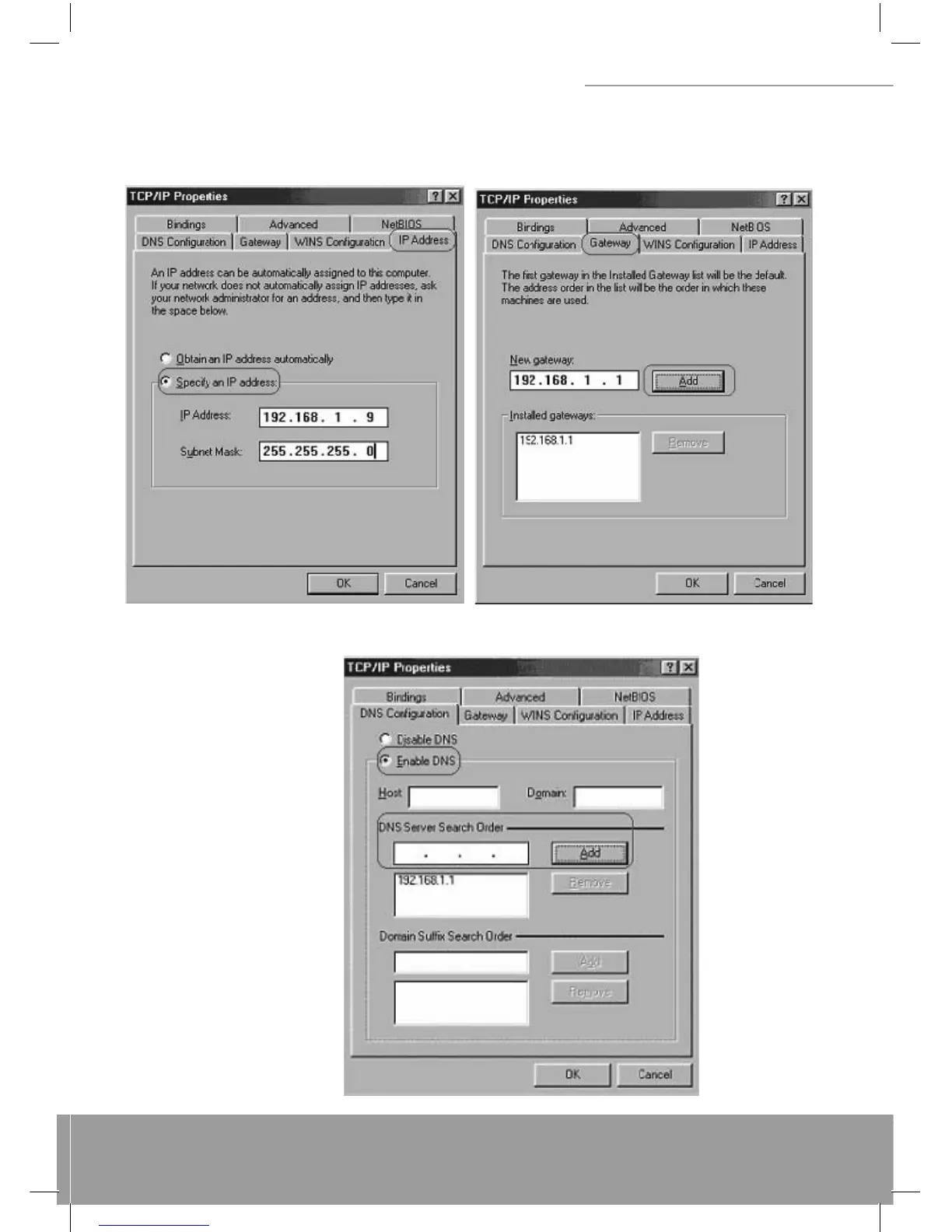 (192.168.1.1) in DNS Server Search Order fi eld then click Add.