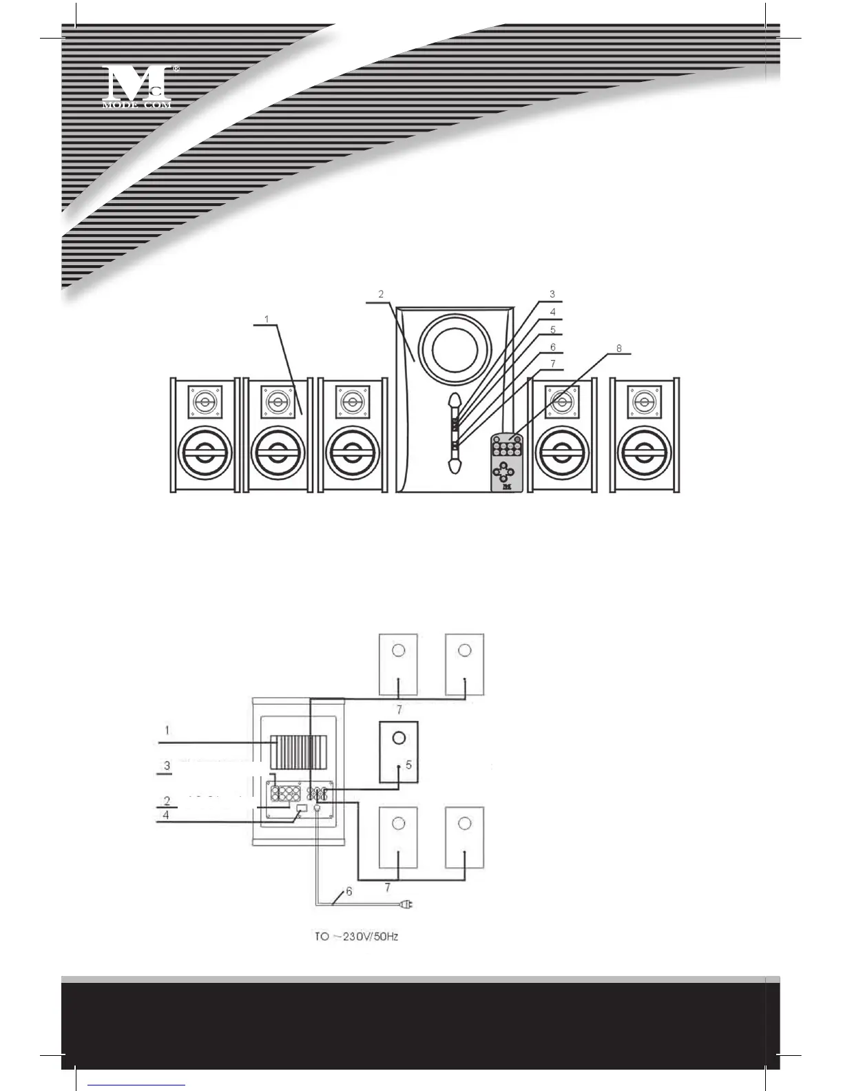 1) Satélite 2) Subwoofer 3) (estado de espera) ST-BY 4) Mute (mudo) 5) Entrada