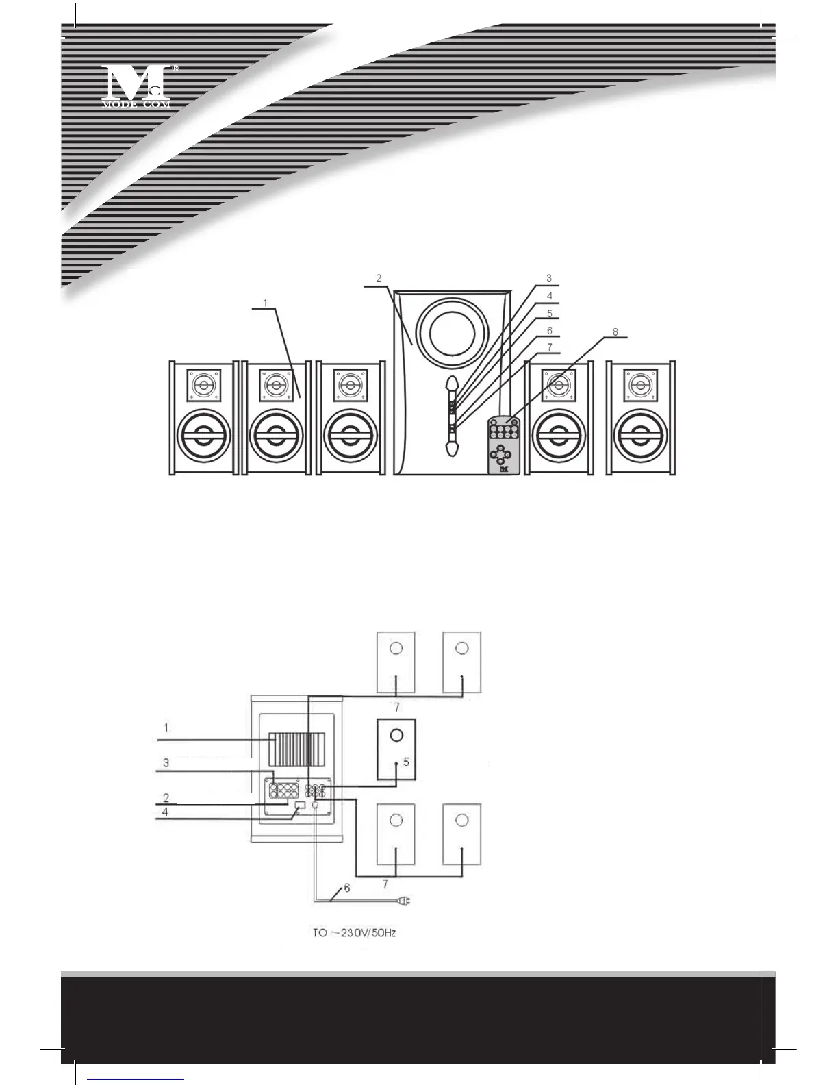 1) Satellit 2) Subwoofer 3) Bereitschaft (ST-BY) 4) Stummschaltung (MUTE)