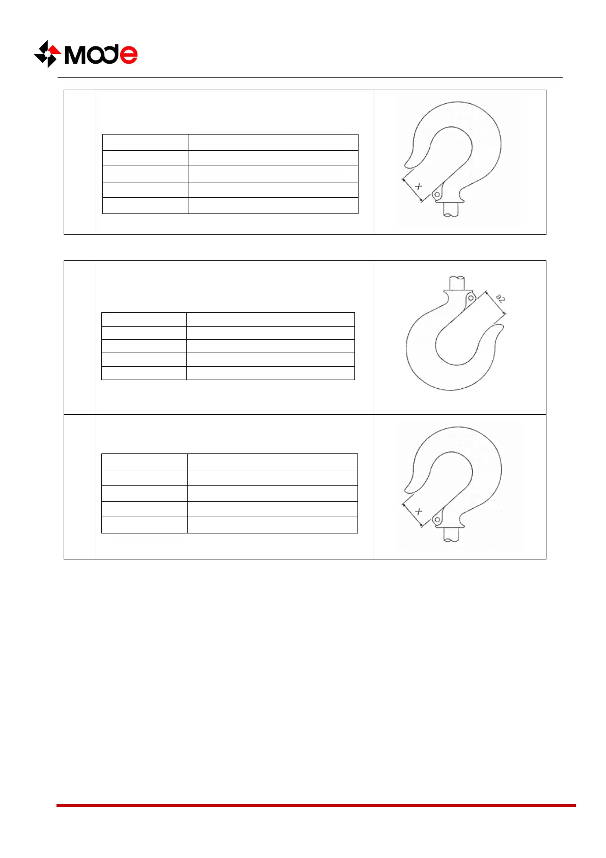 注意:吊钩尺寸为标称尺寸,因为它们没有公差控制。吊钩全新使用时,必须对开口(a2)进行参考测量。