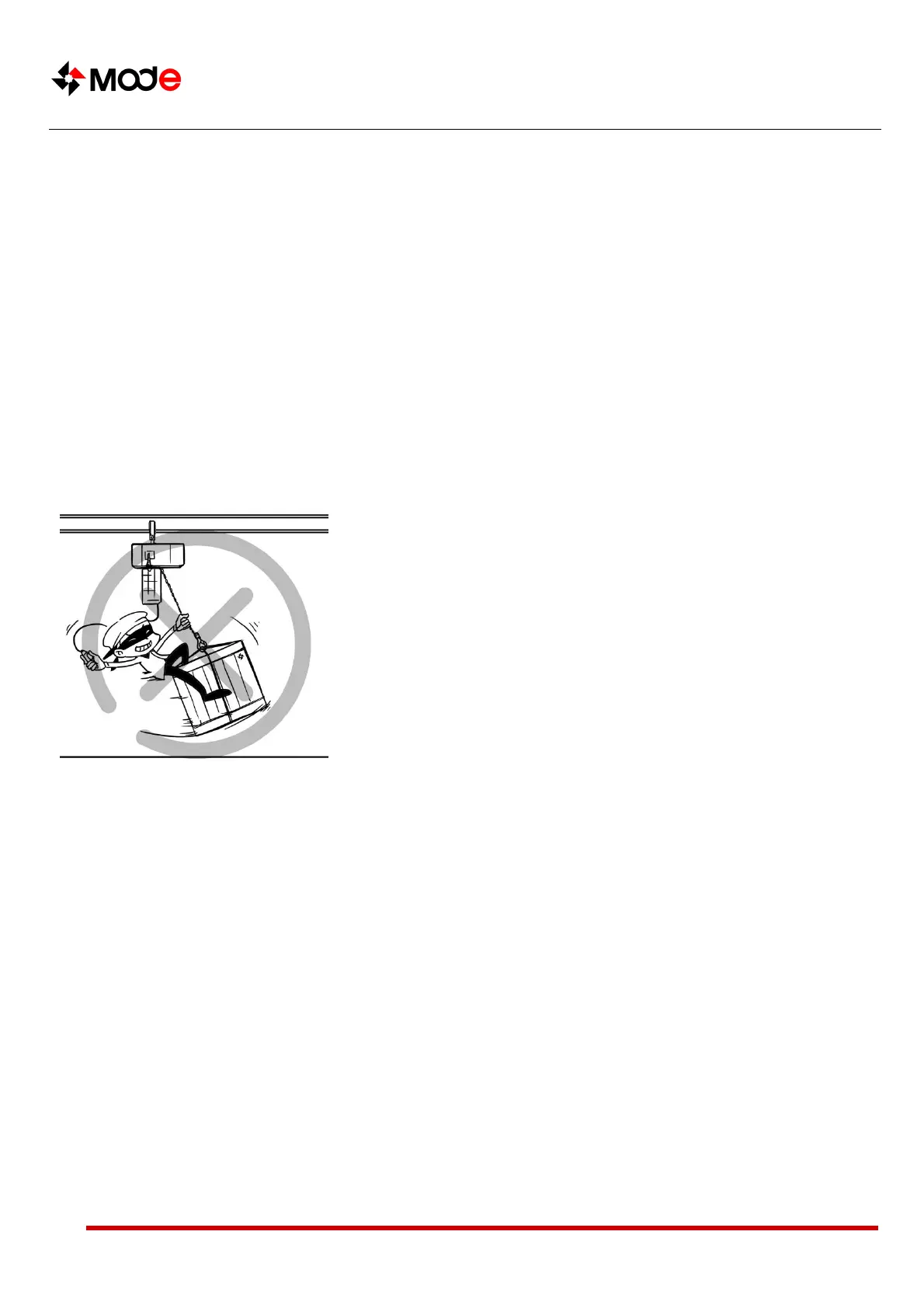 Don’t transport load when there is any person nearby. Don’t move the hook above people no matter it is loaded or not.