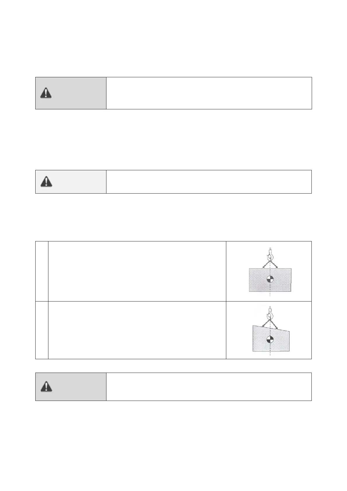 The hook, slings and harnesses must be positioned so that the pulling force of the product lies