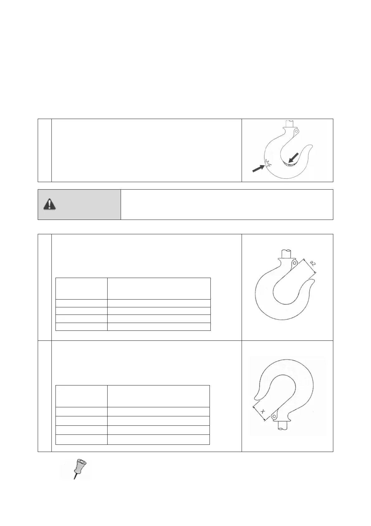 Wear on the suspension and lifting hooks should be checked regularly. Damaged safety